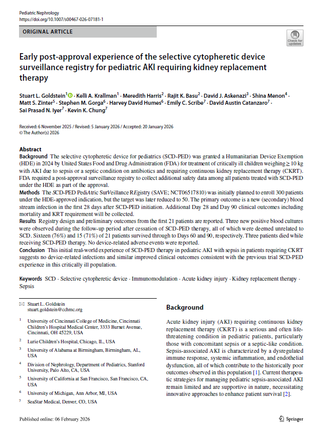 SeaStar Medical is now conducting NEUTRALIZE-AKI to assess the safety and efficacy of the SCD in critically ill adults with AKI requiring CKRT. The study will assess the effect of SCD treatment on various measures of patient clinical outcomes and evaluate the effect of SCD device on patient safety in SCD treatments from time of initiation through one year.